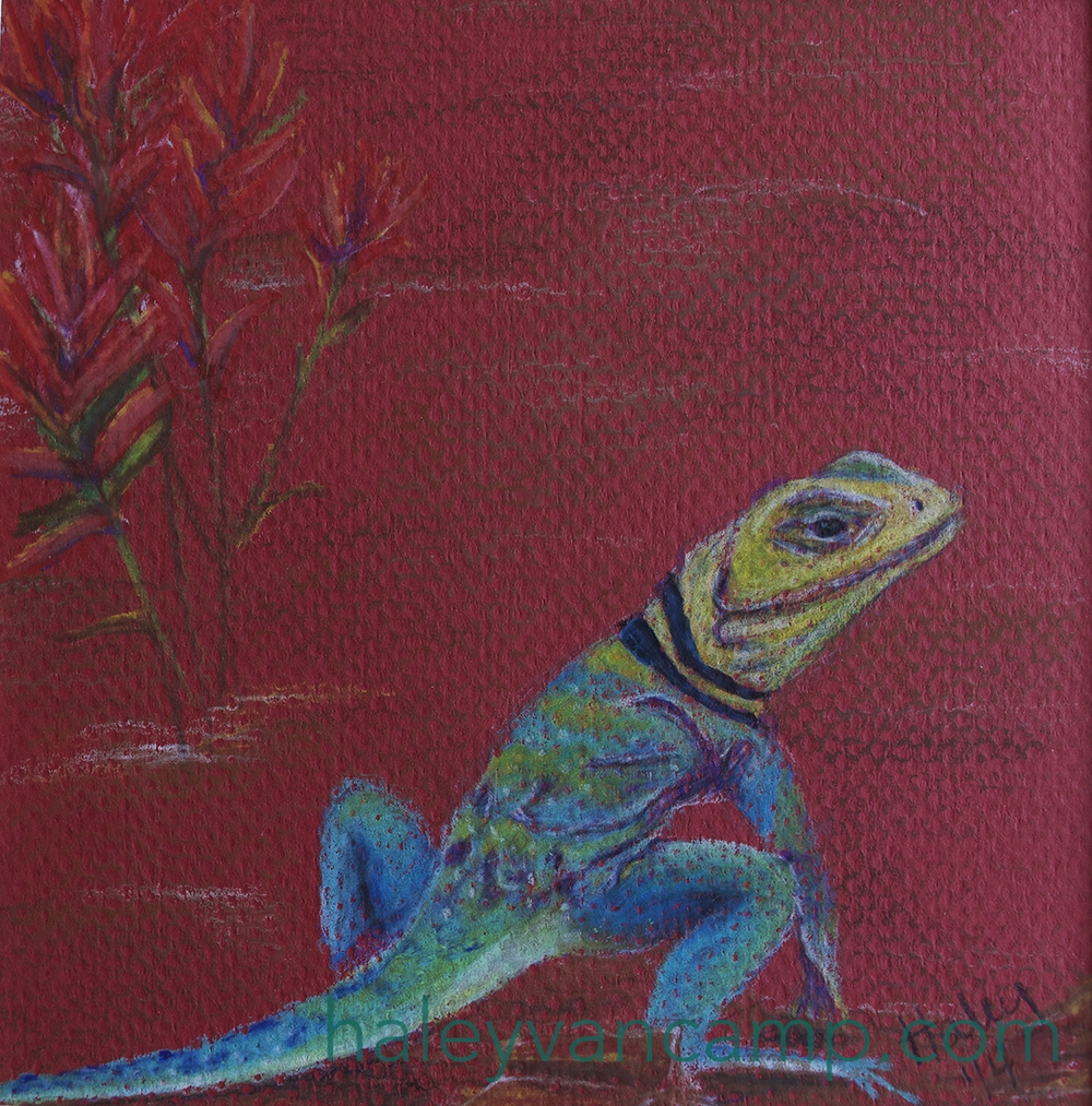 To the left, Nature's Rebellion, below from left to right: Still Life, Colored Waters, Whimsical, Awakening, and Monument Collared Lizard.